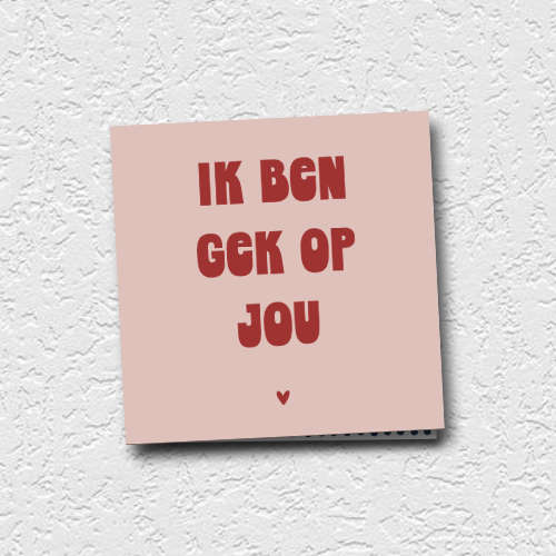 Een mooie en lieve kaart met rode letters op een roze achtergrond!