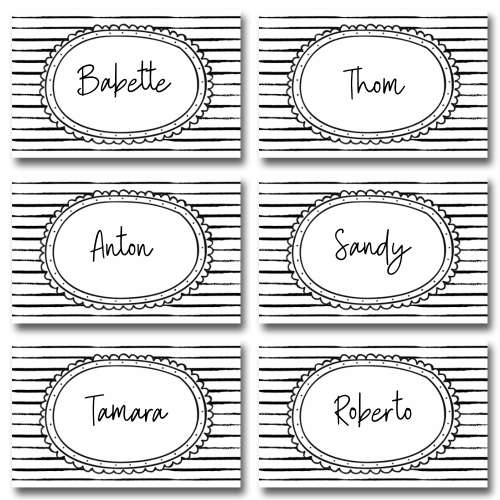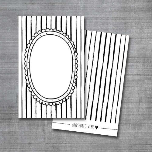 Naamkaartje voor bij bijvoorbeeld een ontbijt, lunch of diner! Het kaartje heeft een leuk kader en een print van strepen. Je kan hem zowel liggend als staand gebruiken!
