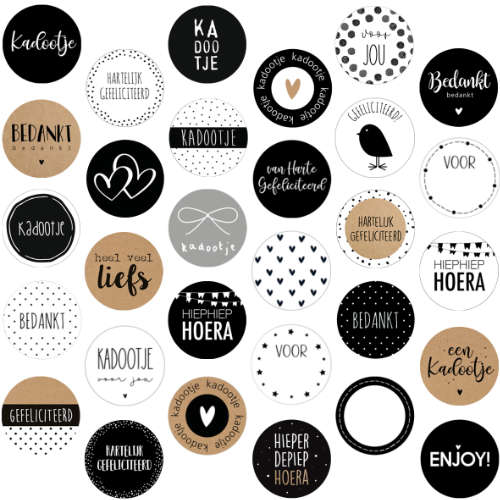 Set van 30 verschillende, ronde stickers om je cadeautjes, traktaties of post nóg leuker te maken!
