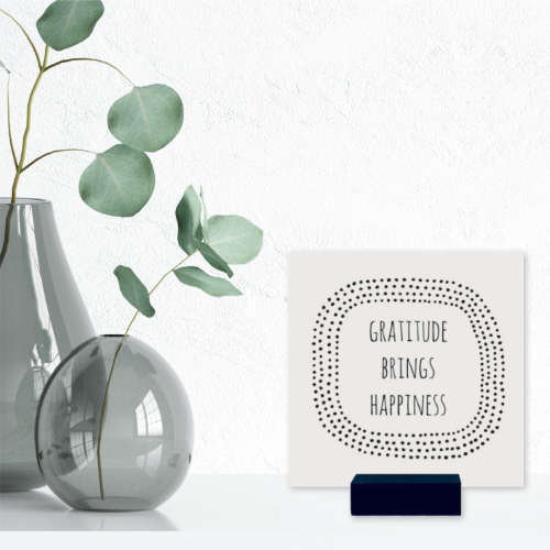 Een mooi, positief tegeltje van duurzaam kunststof met de tekst ‘Gratitude brings happiness’. Hij is ook leuk om te combineren met andere tegeltjes!