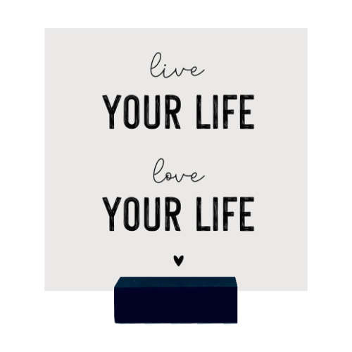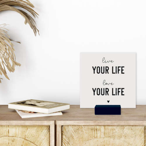 Een heel mooi tegeltje van duurzaam kunststof met de tekst ‘Live your life – Love your life’. Ook leuk om te combineren met andere tegeltjes!